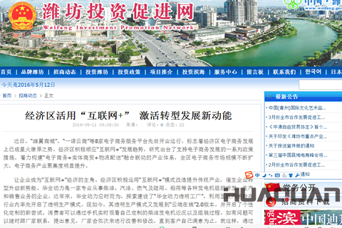 5月11日,山東省濰坊市合作發(fā)展促進(jìn)局旗下的門戶網(wǎng)站——濰坊投機促進(jìn)網(wǎng)以《經(jīng)濟區(qū)活用互聯(lián)網(wǎng)+ 激活轉(zhuǎn)型發(fā)展新動能》未標(biāo)題,用較大