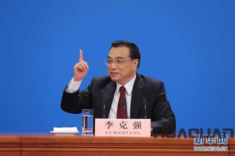 3月16日上午十二屆全國人大四次會議閉幕后,中國國務院總理李克強在人民大會堂三樓金色大廳會見了采訪會議的中外記者并回答了記者提